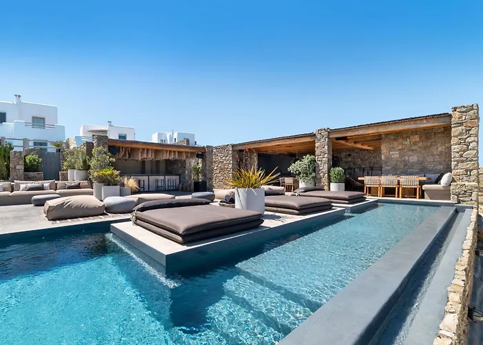Et udstyret køkken er tilgængelig. 5 km til Mykonos lufthavn. Du kan gøre bruge af windsurfing, dykning og tennis på græsbane i denne indbydende villa.